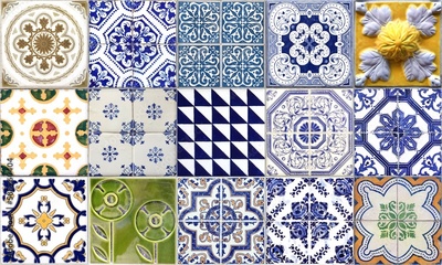 Portuguese tiles. Illustration of Azulejo on white background. Mediterranean style.