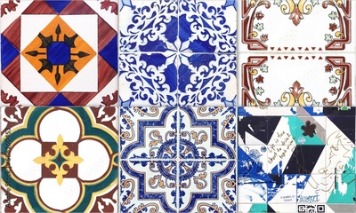 Portuguese tiles. Illustration of Azulejo on white background. Mediterranean style.