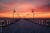 Beautiful sunrise over the Polish sea. Popular pier on the Baltic Sea at sunrise. Photo taken in Gdynia, Poland.