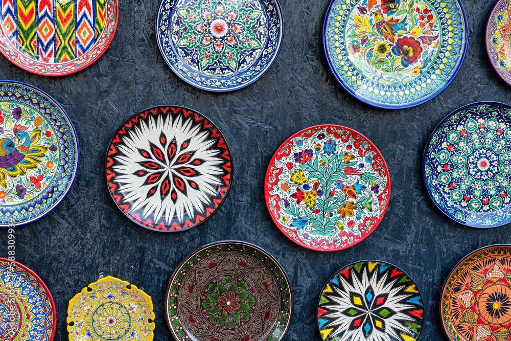 Arabic painted ceramic plates on the wall.
