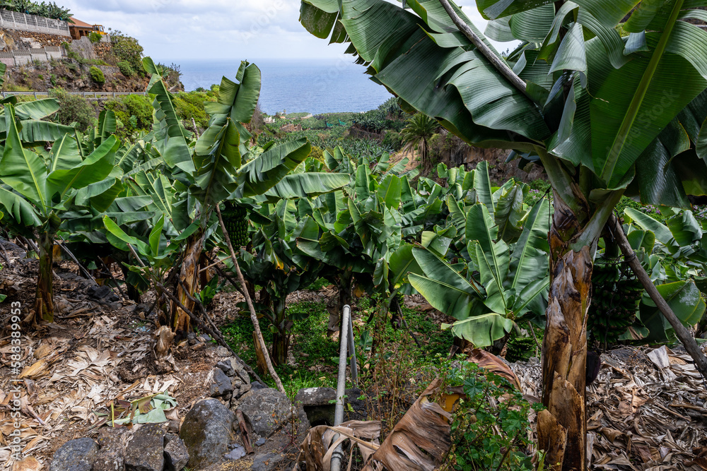 La Palma Banana Plantations. Northern Tropical Landscape of La Palma. Canary Islands, Spain.