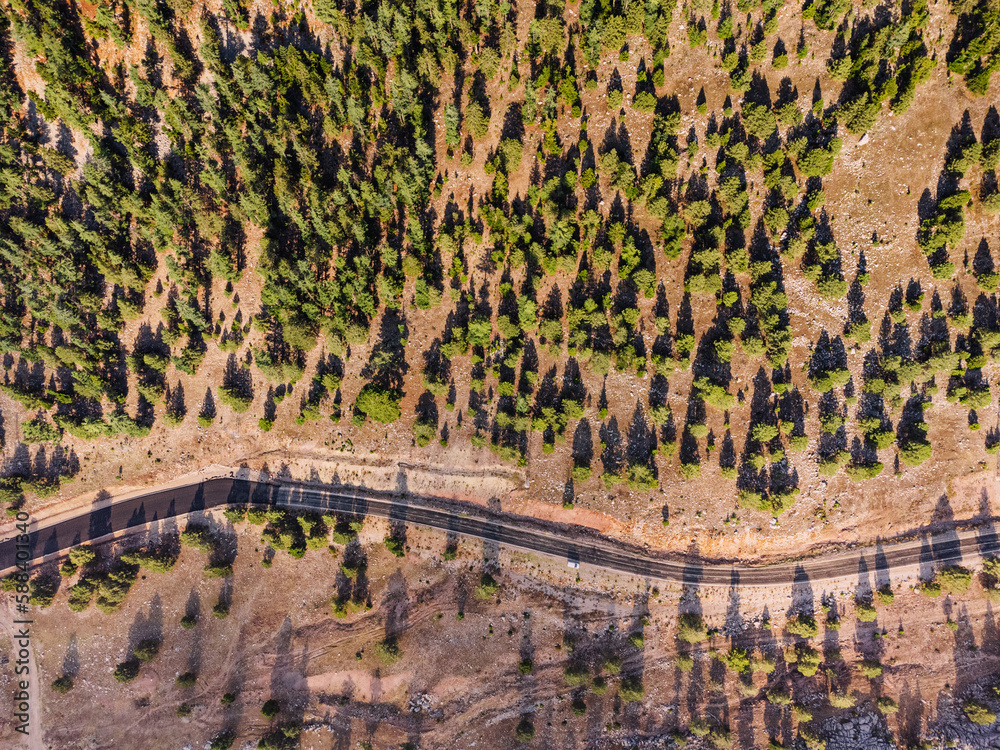 The aerial view of the scenic mountain road in Turkey is truly majestic, as it offers a breathtaking panorama of the surrounding landscape.