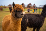 Lamas in contact zoo with domestic animals and people in Zelcin, Czech republic.