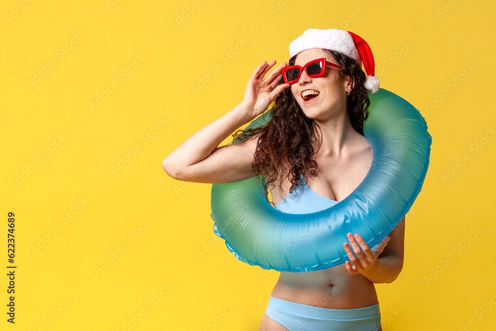 african american guy in white t-shirt refuses beer on yellow isolated background, man against alcohol