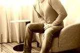Man using his hands touching and covering his crotch suffering from his genitourinary system or genital organ problem Man healthcare and urinary incontinence concept