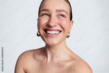 Cheerful woman with perfect skin in studio