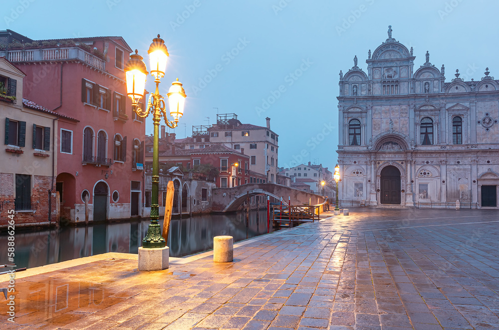 Typical Venetian canal at Saints Giovanni and Paolo square, Venice, Italy