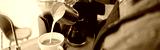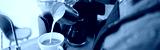Close up of Professional barista is making fresh takeaway latte from coffee machine