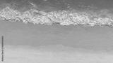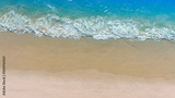 Aerial view with beach in wave of turquoise sea water shot, Top view of beautiful white sand background