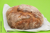 Fresh bread with cereals on green background