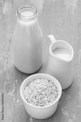 Oat milk. Healthy vegan non-dairy organic drink with flakes