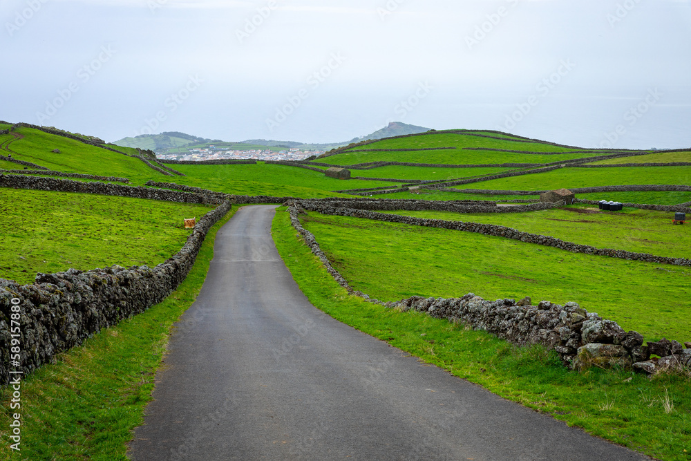 Terceira Island Landscape. Beautiful Green Terceira Island Landscape. Azores Archipelago, in Atlantic Ocean, Portugal.