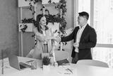 Job position acceptance. Happy woman getting new job offer indoors in modern office, holding box
