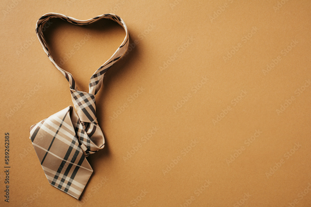 Happy Father's Day concept. Heart shaped necktie on brown background.