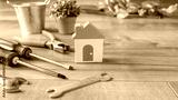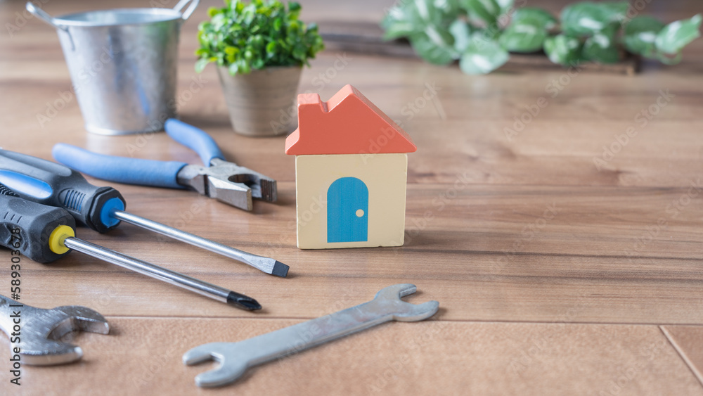 積み木の家と工具|住宅設備修理イメージ