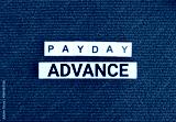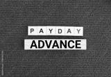 alphabet and wooden letters with the word payday advance. concept of advance salary