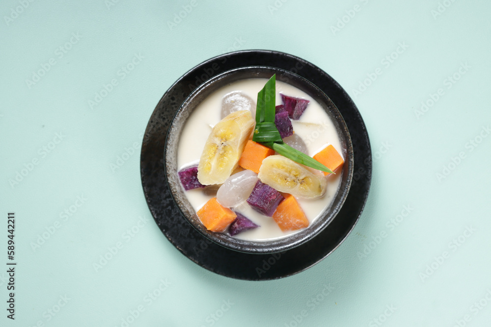 Kolak Campur Pisang Ubi is Banana Sweet Potato Compote in Coconut Milk Syrup.