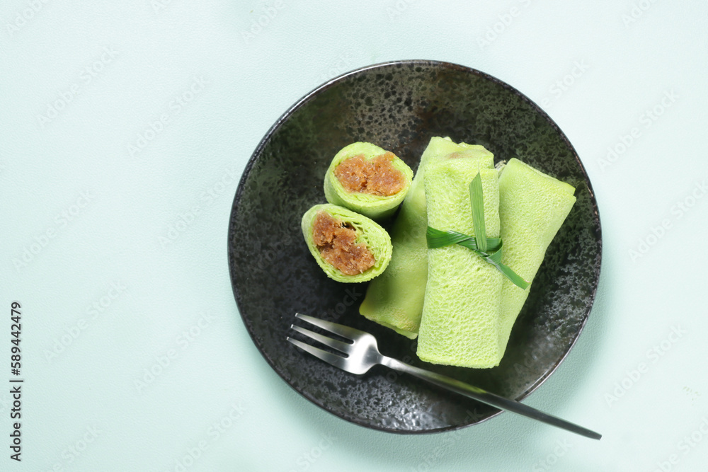 Kuih Ketayap in Malaysia or Dadar Gulung in Indonesia is a Roll Crepes Filled with Grated Coconut and Palm Sugar.