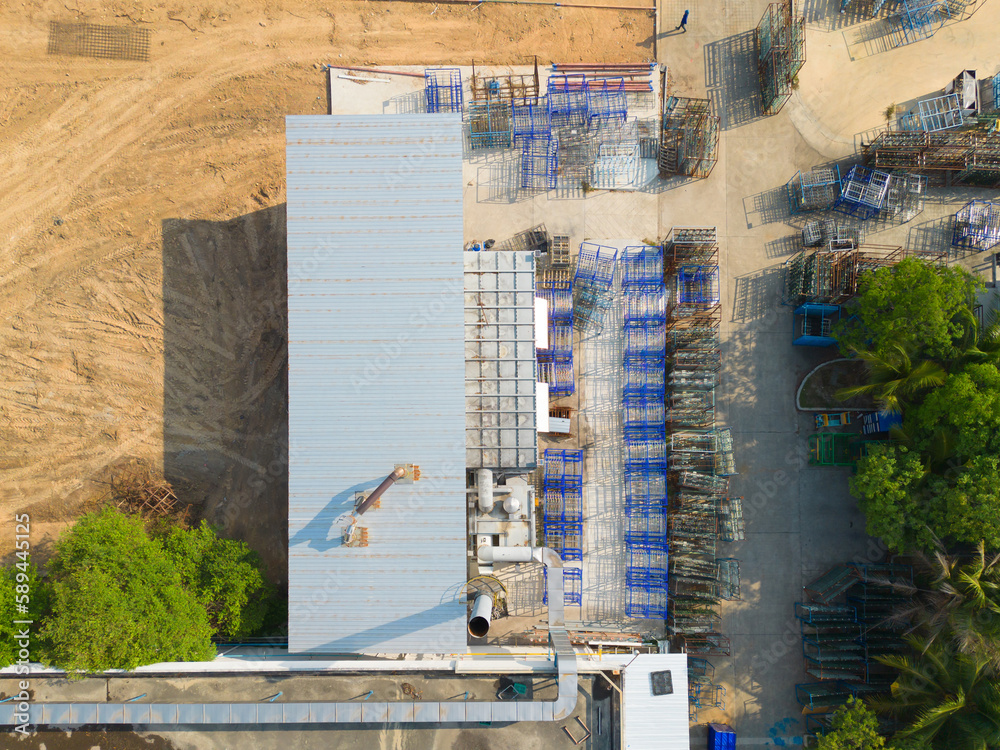 Aerial top view of industry factory in urban city town. Inventory import and export business commercial, Automobile and automotive industry distribution logistic transport.