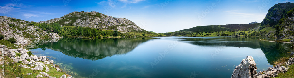 Lake Enol in Picos de Europa, Asturias, Spain. Panoramic view
