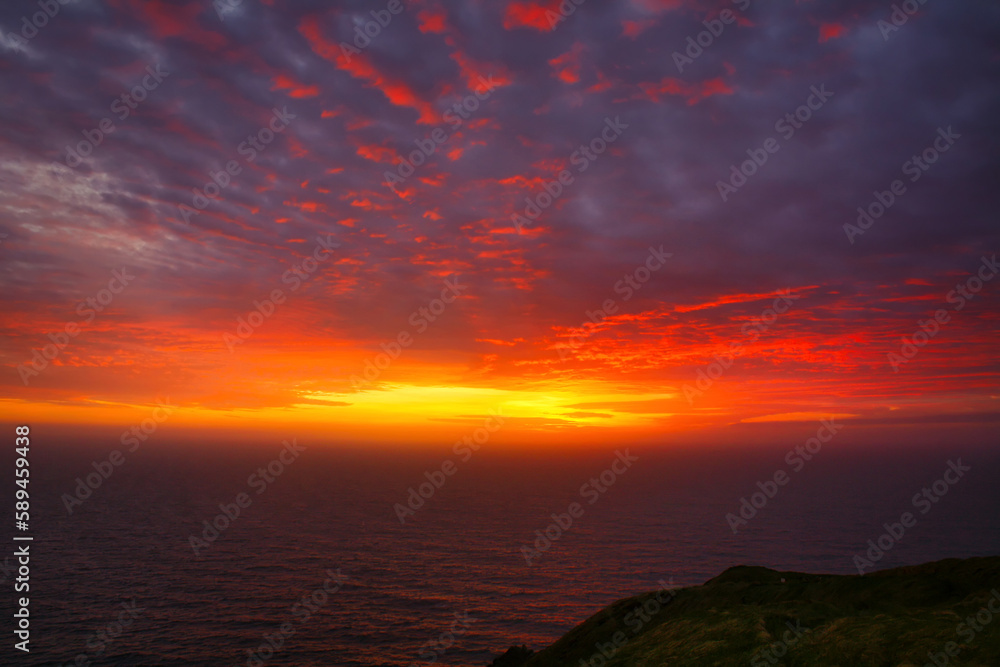 Beautiful sunset over the Atlantic from the Cliffs of Moher, County Clare, Ireland