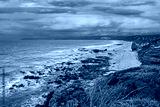 Panorama vom Aussichtpunkt Splitpoint Lighthouse auf die Küste des Pacific bei Sonnenuntergang