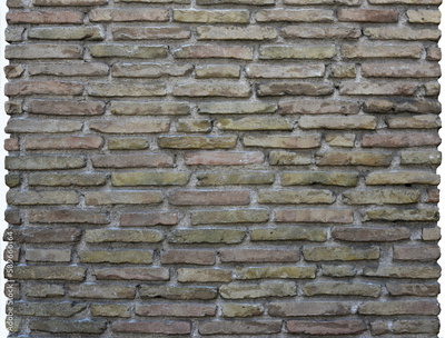 Brick wall texture, closeup of an old exterior surface as a background. Building face wall, concaved joint line between dissimilar faded bricks brings character and dimensionality to vintage masonry.