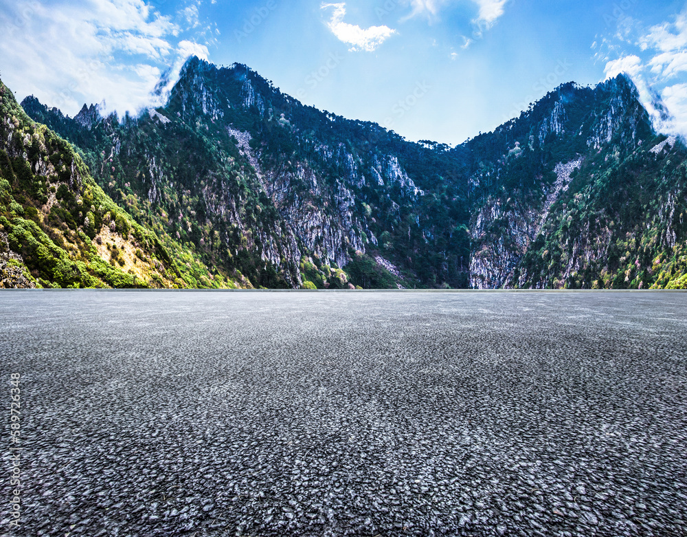 Asphalt road and mountain nature landscape under the blue sky in summer