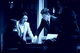 asian project team working late together meeting in office