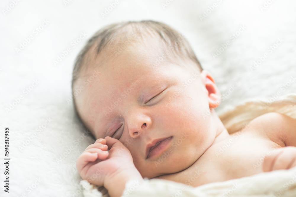 Cute newborn baby lying on a developing rug. Love baby. Newborn baby