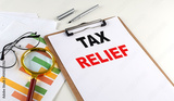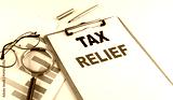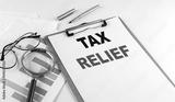 TAX RELIEF text on clipboard with chart on white background, business concept