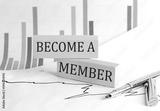 BECOME A MEMBER text on a wooden block on chart background , business concept