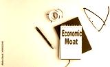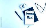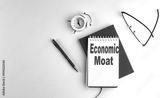 ECONOMIC MOAT text on notebook , red pen and notebook, business concept, white background