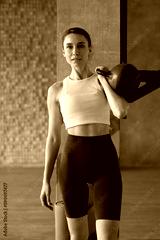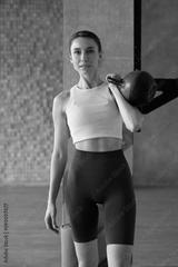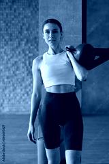 Portrait of a woman with kettlebell in her hand