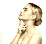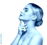 Woman Face Profile. Beautiful Girl Portrait Side view isolated White. Beauty Model pointing with Finger on Perfect Chin and Neck. Facial Lifting Massage and Plastic Surgery Concept