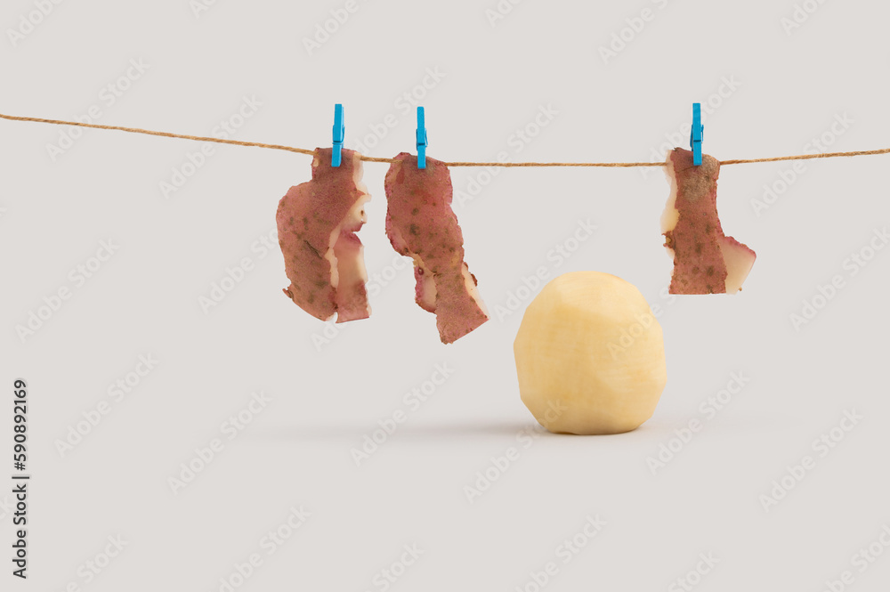 Creative food and vegetable concept with peeled potato.