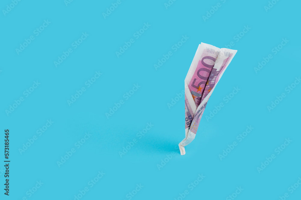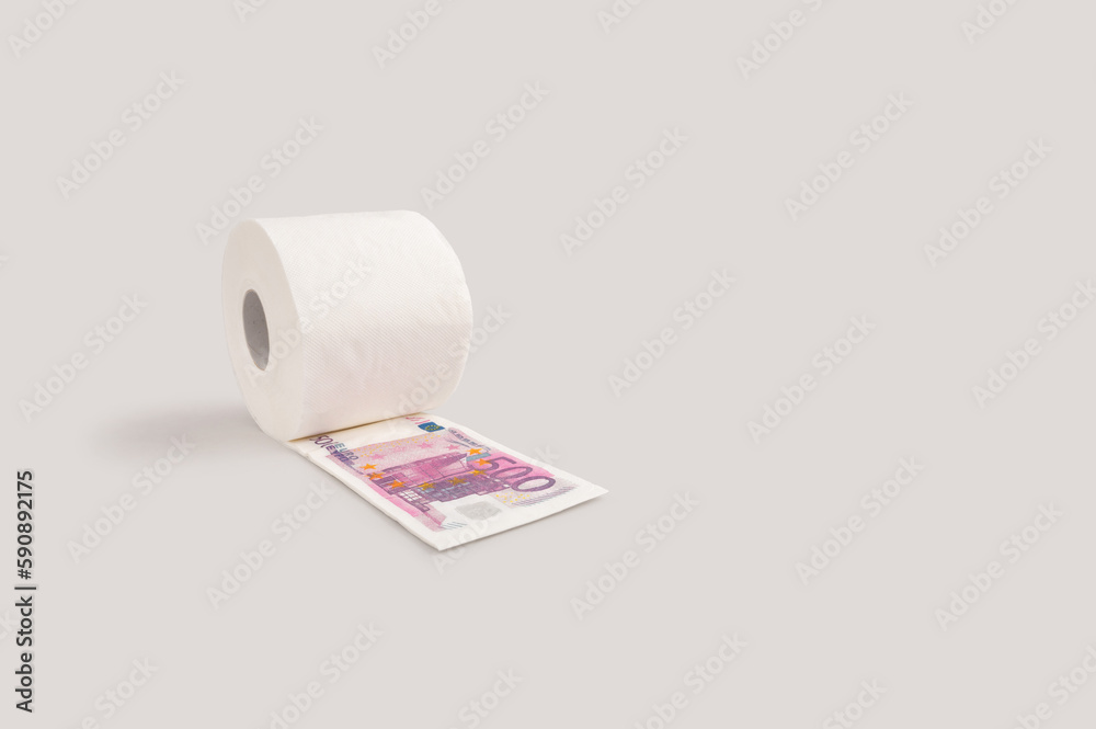 Creative money and finance concept with toilet roll paper and euro banknote