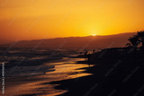Vibrant and Serene Sunset View of the Ocean Beach with Golden Sunrays Reflecting on the Waves