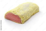 homemade peameal bacon isolated on white background