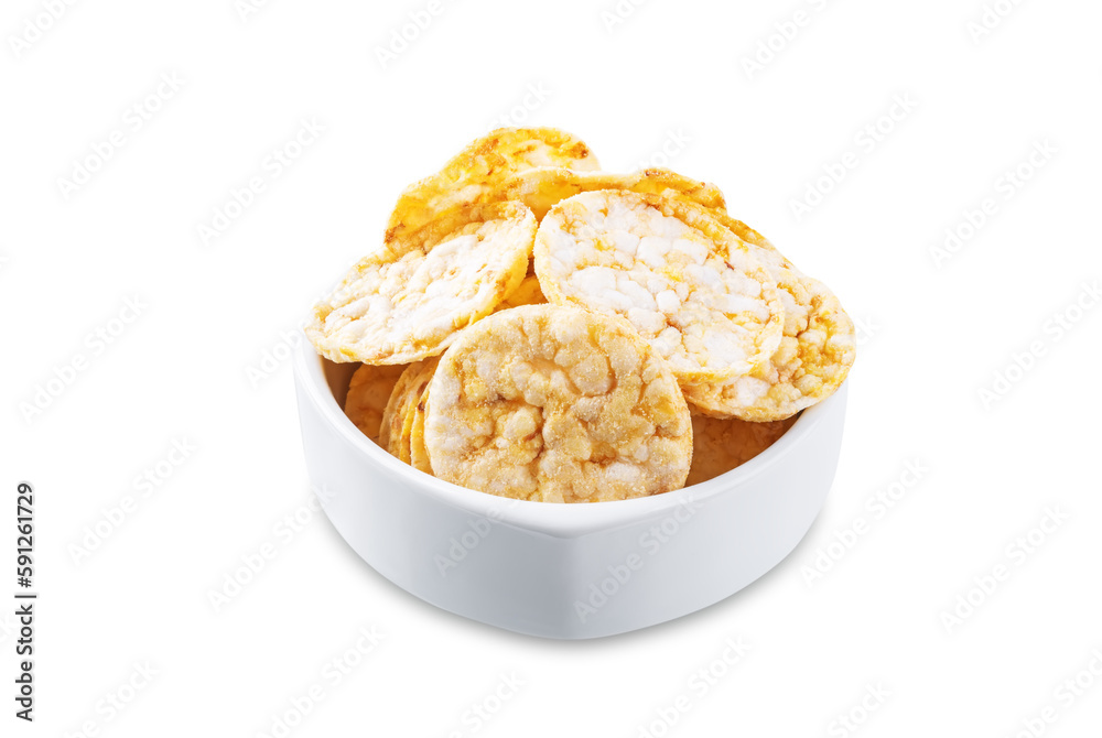 Healthy whole grain chips on a white isolated background