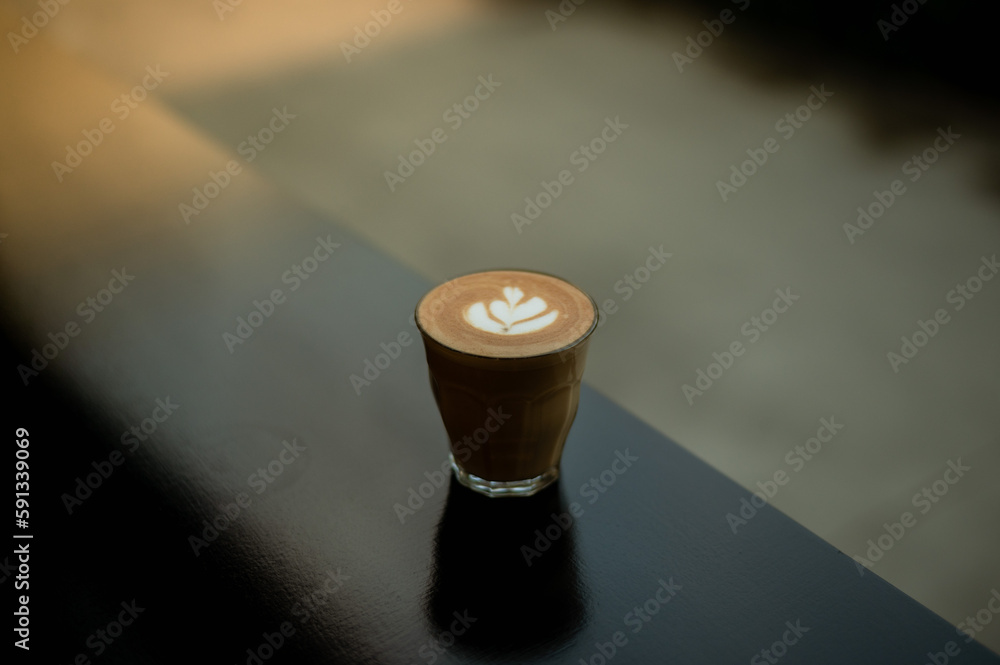 A cup of coffee with a latte art on it