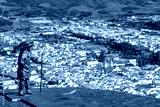 View of the city of Angra do Heroismo. Historic fortified city and the capital of the Portuguese island of Terceira in the Autonomous Region of the Azores. Portugal.