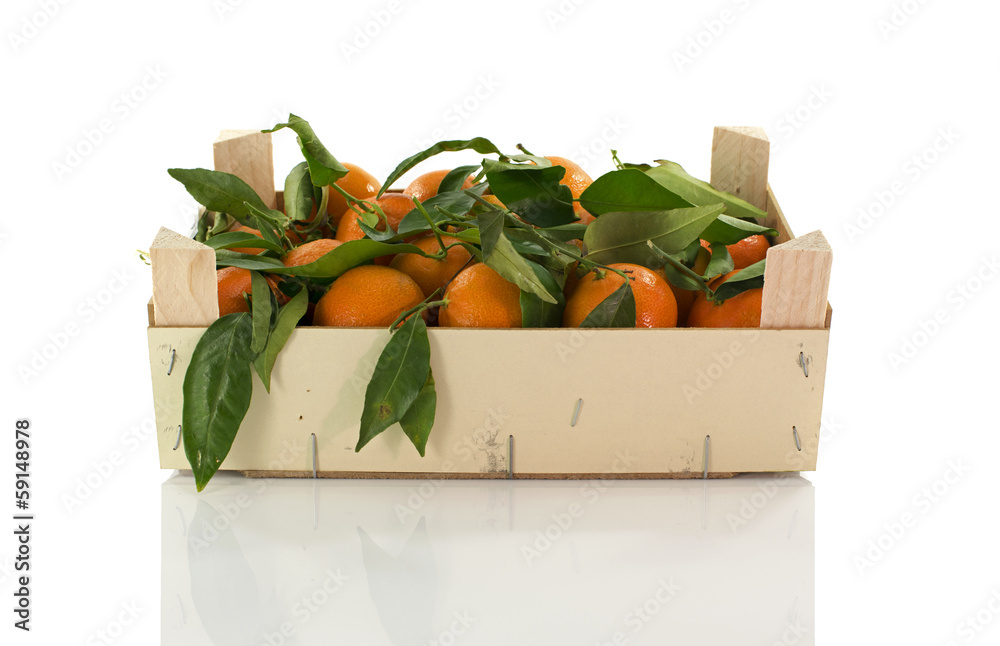 wooden box with mandarines