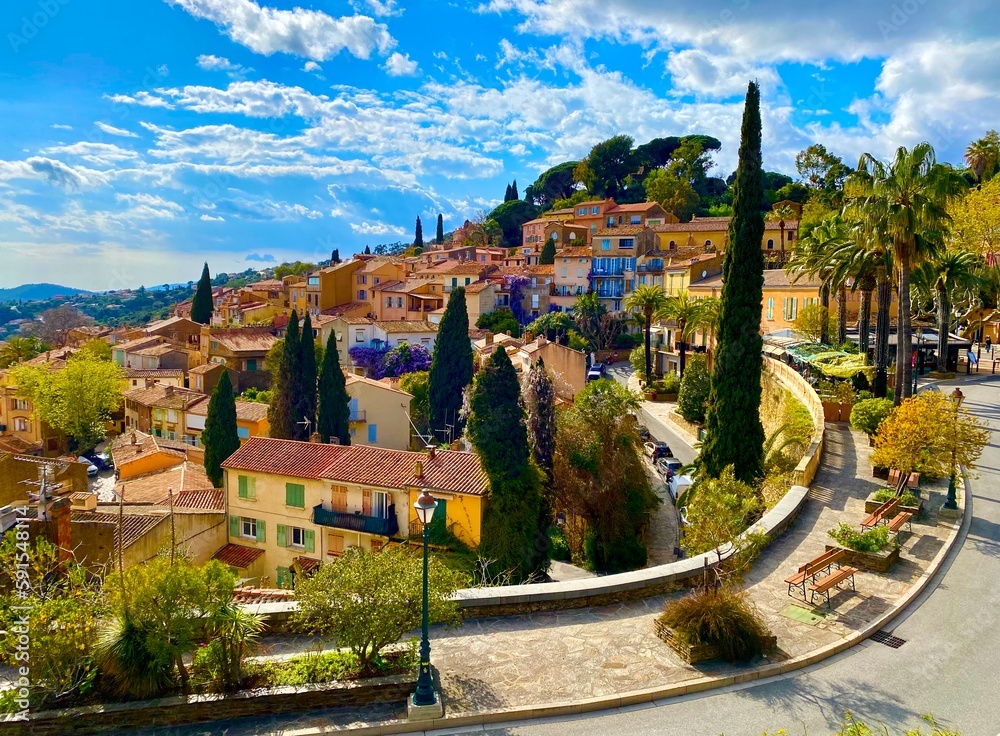 view of the roofs of the town Bormes les Mimosas in the south of France