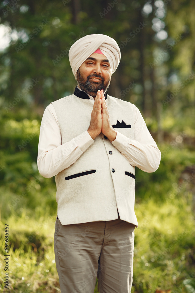 Portrait of Indian sikh man in turban with bushy beard
