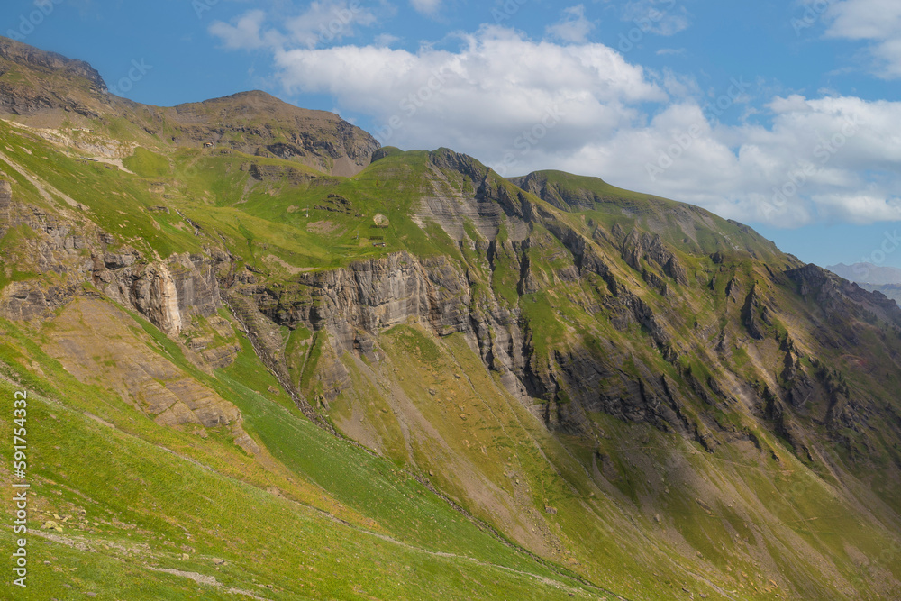 View of the Swiss Alps on the way up to the summit of the Schilthorn via cable car