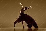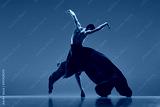 Impressive, artistic young man, professional ballet dancer dancing with red silk fabric against grey studio background. Concept of art, classical dance, inspiration, creativity, beauty, choreography
