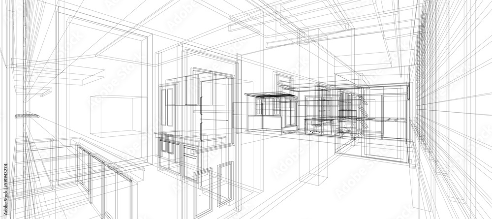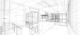 Smart house automation system interior wireframe digital intelligent technology abstract background architecture 3d wireframe construction
