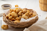 Crispy pork rinds,deep fried pork skin on wicker basket,yummy snacks food.
