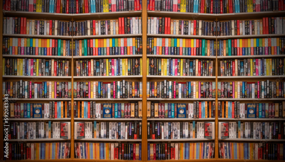 Books in shelf of a library making a education background